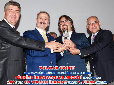 POL-KAR Group Antalya Organize Sanayi Bölgesi' nde ihracat dalında Türkiye İhracatçılar Meclisi tarafından 2011 yılı en yüksek ihracat yapan 1. firma seçildi.
